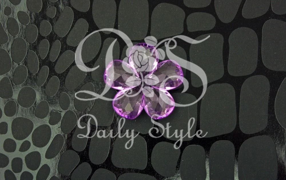 Decoratie bloem van acryl in paars transparant. De bloem heeft een doorsnede van 4 cm en een dikte van circa 1 cm. Eén verpakking bevat 12 bloemen.