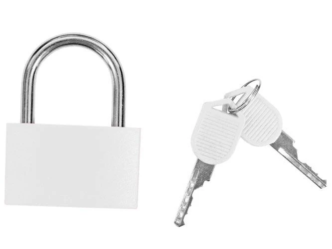 Gekleurd hangslot van 43mm wordt geleverd met 2 sleutels. De sluitbeugel is 4mm dik.
