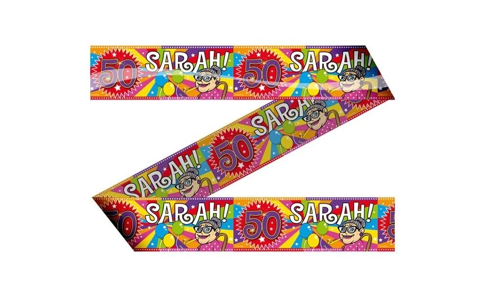 Feestelijk afzetlint uit de serie Sarah 50. Het afzetlint is 7,6cm breed en 15m lang.