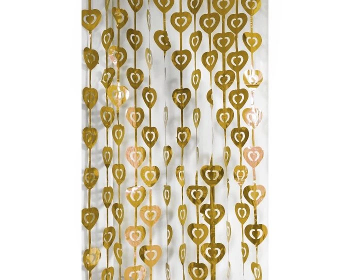 Prachtige deurgordijn van gouden hartjes. De deurgordijn is 1 meter lang en 2 meter hoog.