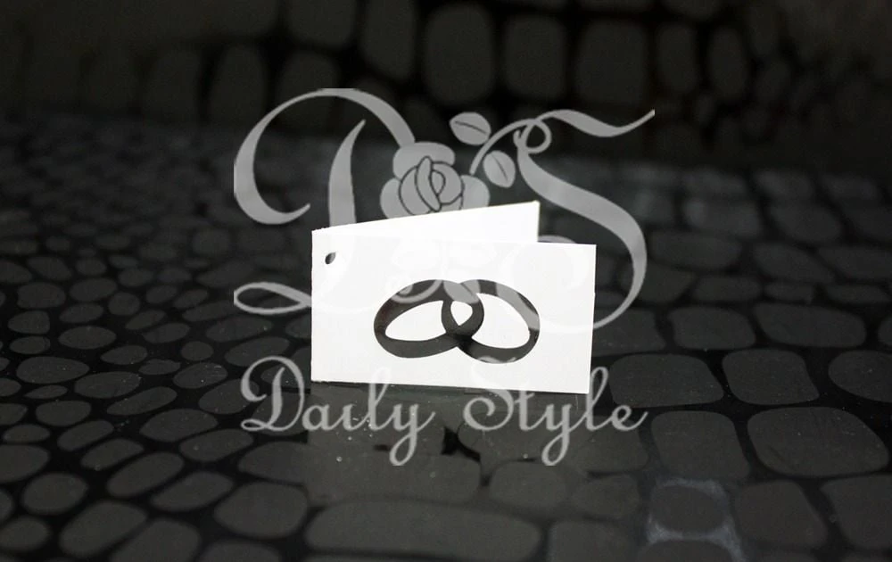 Bedankkaartje met een paar kruisende ringen in het zilver. Het kaartje is ingevouwen staat 4,5 x 2,5 cm groot. Eén verpakking bevat 24 kaartjes.