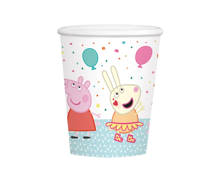 Vrolijke kartonnen bekers van Peppa Pig met haar vrienden. Leuk voor een Peppa Pig verjaardagsfeestje! De bekers hebben een inhoud van 250 ml en zijn verpakt per 8 stuks.