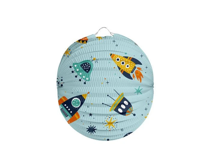 Bol lampion met afbeeldingen van raketten en ruimtevaartuigen. Leuk voor Sint Maarten!