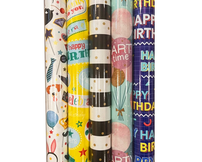 Cadeaupapier Happy Birthday (5 Rollen)