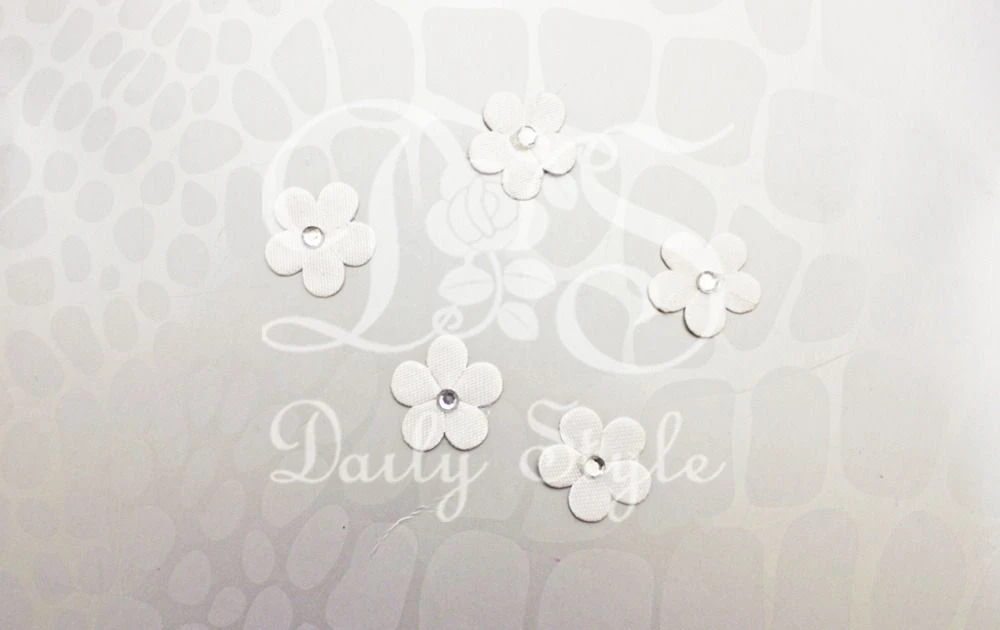 Satijnen decoratie bloemetjes met steentjes in het wit. De bloemetjes hebben een doorsnede van 2cm en zijn per 24 stuks verpakt.