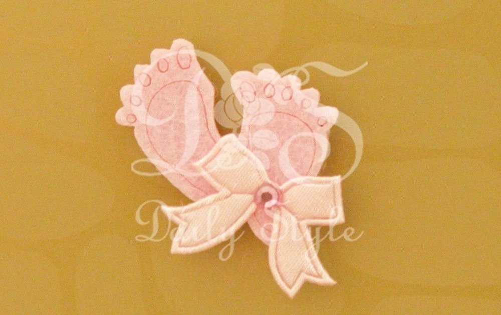 Decoratie vilt in de vorm van voetjes in het roze. Het embleem heeft een afmeting van 3 x 3 cm. Eén verpakking bevat 12 voetjes.