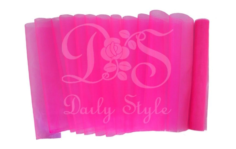 Decoratiestof van organza in fuchsia. De decoratiestof heeft een afmeting van 30 x 500 cm.