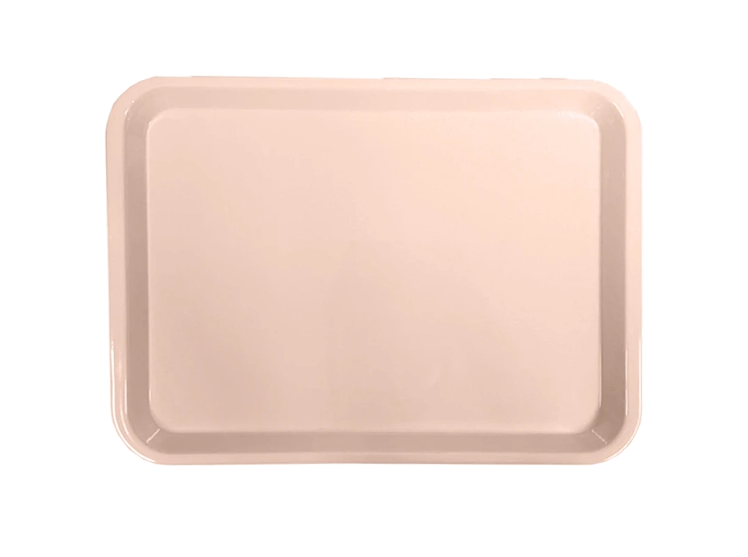 Roze dienblad van melamine voor het uitserveren van bijvoorbeeld kopjes koffie. Het blad is 36 x 26 cm groot.