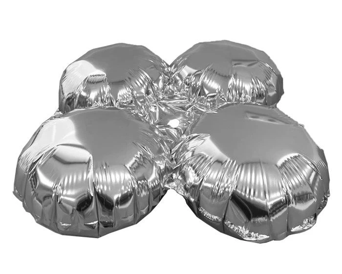 Folieballon standaard bestaande uit vier cirkels in het zilver. De folieballon kan gebruikt worden als voet/standaard voor een cijfer folieballon zodat deze kan blijven staan. De folieballon is ongeveer 32x32cm groot en kan alleen met lucht worden gevuld.