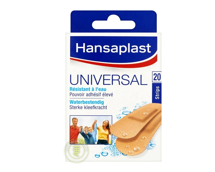 Hansaplast Pleisters Universal Strips zijn gemaakt van waterafstotend en vuilwerend materiaal en is universeel te gebruiken bij elke activiteit. Deze pleisters zijn luchtdoorlatend, flexibel, waterbestendig en vuilwerend. Te gebruiken op alle lichaamsdelen, voor de normale huid.