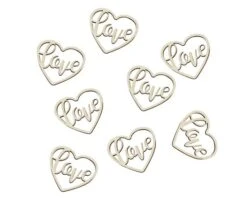 Mooie houten love confetti in een hartjes vorm van Ginger Ray. Een verpakking bevat ca. 24 hartjes van 3,5x4x0,2cm groot.