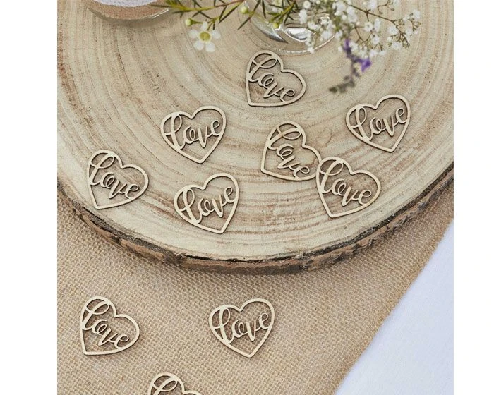 Houten Confetti Hart Love Ginger Ray (24st)