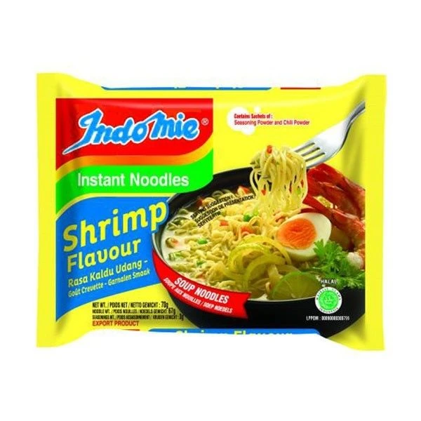 Instant noedels met garnalen smaak. Indomie Shrimp 5 pack.