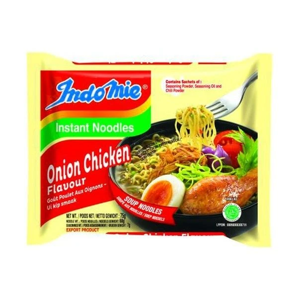 Instant noedels met ui kip smaak. Indomie Onion Chicken 5 pack.