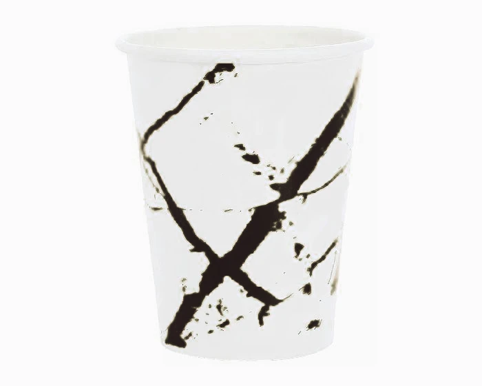 Kartonnen witte bekers met zwarte marmer effect. De bekers zijn verpakt per 20 stuks.