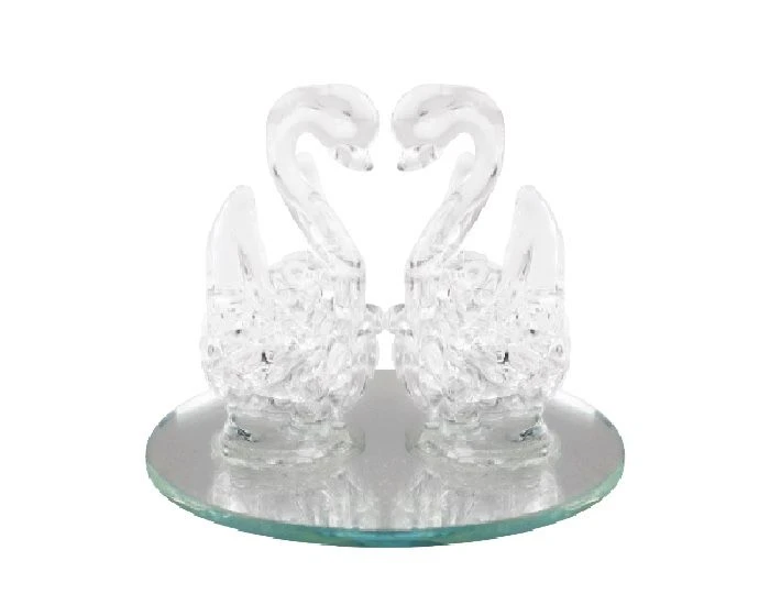 Kristallen zwanenpaartje met zilveren glittervleugels
