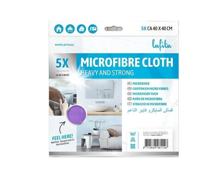 Microdoekjes van Lafita. Eén verpakking bevat 5 doekjes in verschillende kleuren.
