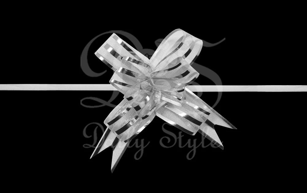 Kleine maat treklint in half-transparant zilver voor het versieren van je bedankje of gewoon op een cadeau. Het lint is 18 x 370 mm groot in platte vorm. Verpakt per 10 stuks.