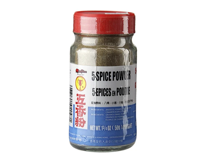 Mee Chun vijfkruidenpoeder (of 5-spice powder). Dit is een Chinese kruidenmengsel dat de 5 basissmaken bevat: