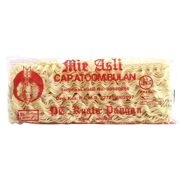Bereidingswijze: Voeg de Mie Atoom Bulan toe aan kokend water gedurende 2 minuten op laag vuur. Giet het water af. De mie is nu klaar voor uw favoriete soep of gebakken bami gerecht.