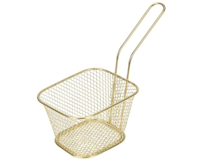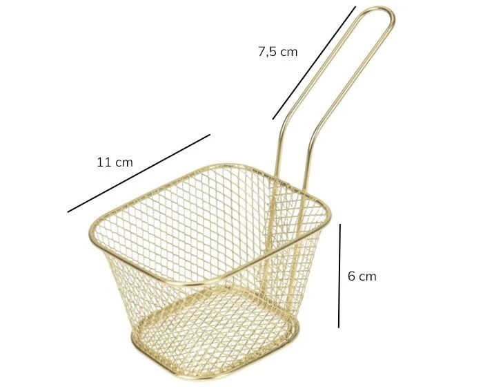 Goudkleurige kleine frituurmand. Ideaal bij het serveren van snacks zoals bitterballen, kipnuggets, frietjes etc.