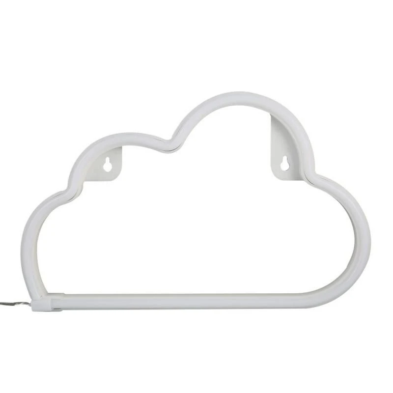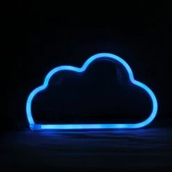 Neon lamp in de vorm van een wolkje. De neon led lamp is een echte eyecatcher in elke kamer en je kan deze veilig ophangen of op een kastje neerzetten. Deze lamp geeft warm blauw licht af. De lamp werkt op 3 AA batterijen of een USB kabel.