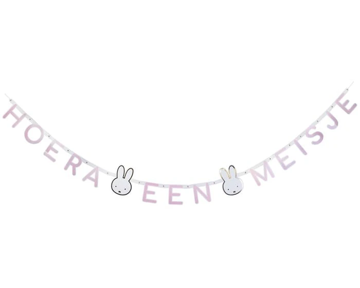 Vrolijke figurenslinger met Nijntje figuren en de tekst ‘Hoera een Jongen’. Leuk als versiering bij een geboorte, babyshower of kraamfeest.