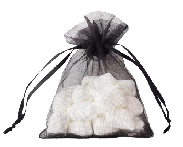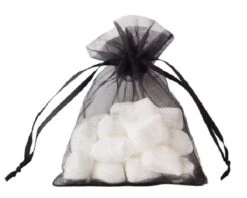 Organzazakjes in de kleur zwart. Het zakje heeft een afmeting van 13 x 19 cm. Eén verpakking bevat 12 organzazakjes.