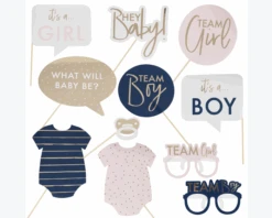Zijn jouw gasten team boy of team girl? Leg het vast op de foto met deze leuke photobooth props van Ginger Ray waarbij de gasten een keuze kunnen maken wat zij denken dat het gaat worden! Perfect voor een Gender Reveal party. De set bestaat uit tien verschillende photobooth props die variëren in maat en ontwerp.