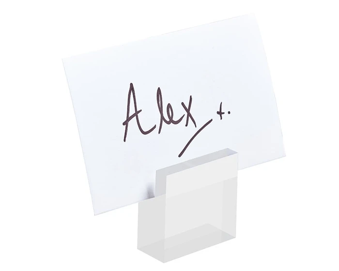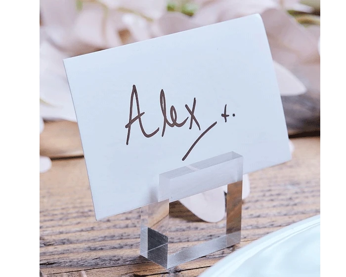 Deze prachtige doorzichtige plaatskaarthouders van acryl zijn een eenvoudige en elegante manier om jouw gast te laten zien waar hij moet zitten. Deze tijdloze blokken kunnen ook na de bruiloft gebruikt worden om foto’s of ansichtkaarten weer te geven. Elke set bevat 4 acryl plaatskaarthouders en vier kaartjes. Verwijder voor gebruik de beschermfolie.