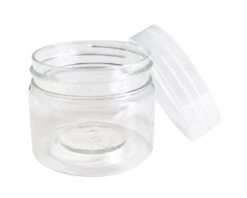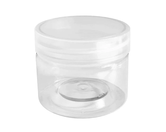 Plastic ronde potjes met deksel om te vullen met snoepjes als (trouw)bedankje of traktatie. De potjes hebben een doorsnede van 5,5cm en zijn 4,5cm hoog. Een verpakking bevat 12 potjes.