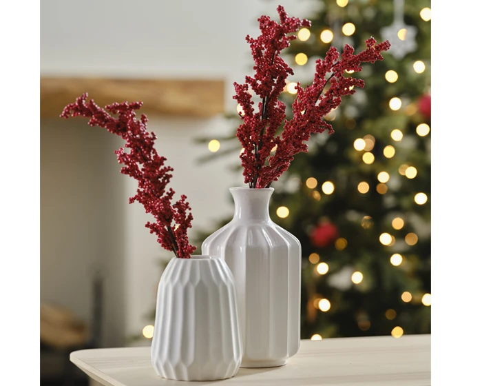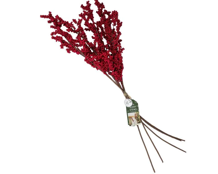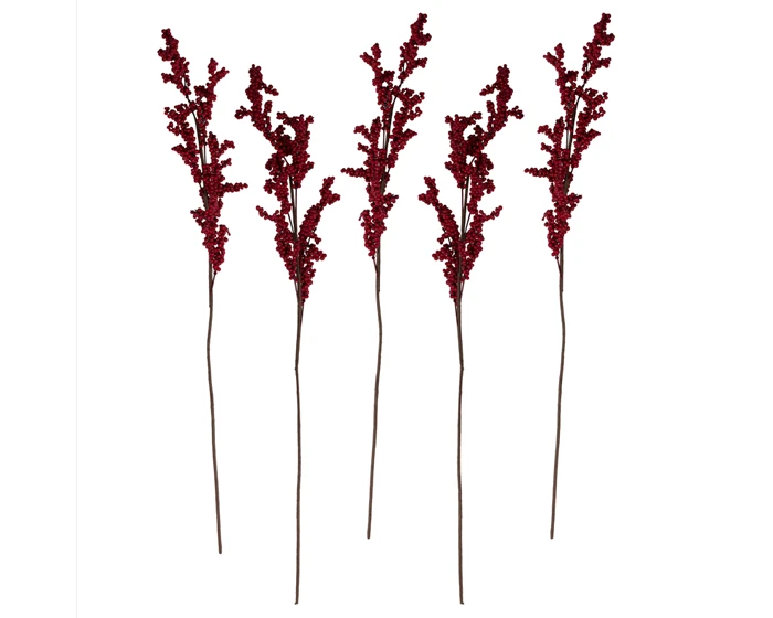 Deze prachtige kerstdecoratie met rode bessen zijn perfect om je kersttafel mee te stylen. Elke verpakking bevat 5 kunststengels van kerstbladeren van 75 cm (H).