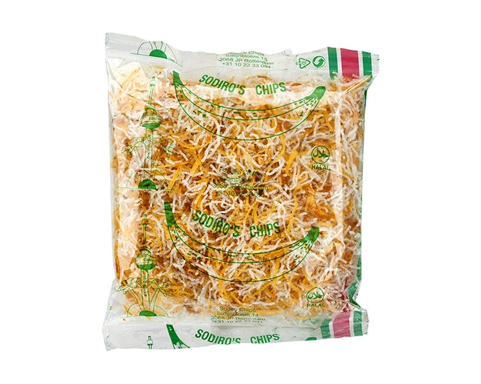 aardappel, vermicelli (mungbonen, erwtenmeel), gebakken uien (tarwemeel (gluten), palmolie, zout), zonnebloemolie.
