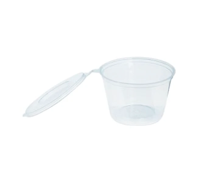 Transparant plastic sauskuipje met deksel, heeft een capaciteit van 100ml en is verpakt per 50stuks.