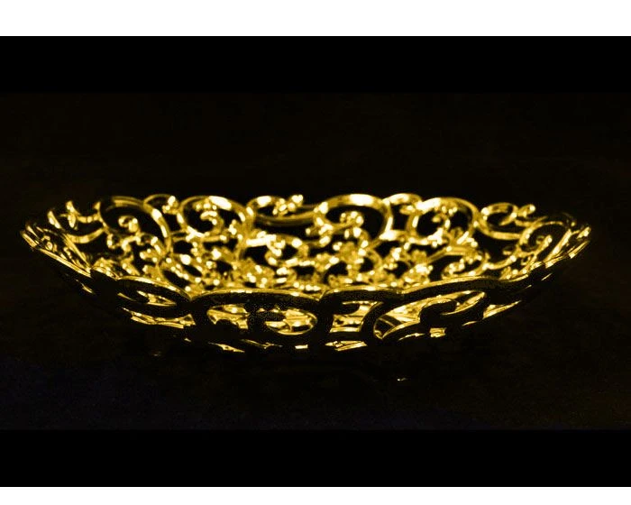 Decoratief gouden schaaltje van plastic in Barok stijl. Het schaaltje heeft een diameter van 17,5 cm.