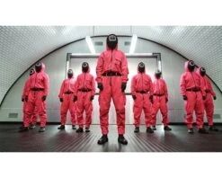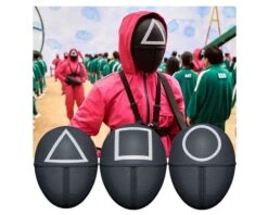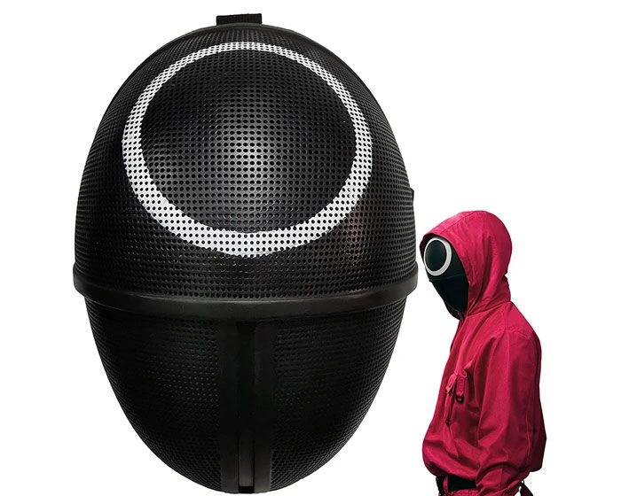 Verkleed je als een van de personages uit de Koreaanse Netflix hitserie ‘Squid Game’ met deze zwarte masker met een cirkel symbool.