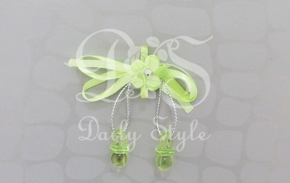 Decoratie strikje met speentjes in het groen. Het strikje heeft een afmeting van 6,5 x 6,5 cm. Eén verpakking bevat 12 strikjes.