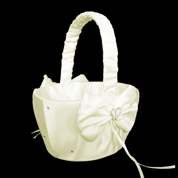 Strooimand ‘Mandy’ is aan beide zijden versierd met een harten strass decoratie op een strik. De mand heeft een dia van 15cm en een hoogte van 9,5cm. Met het hengsel heeft de mand een hoogte van 20cm.