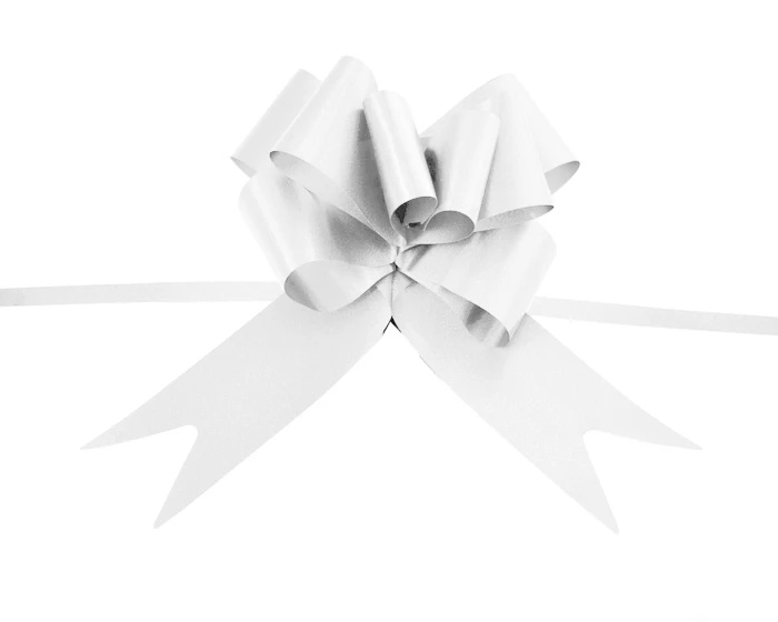 Grote maat treklint in het wit, voor het versieren van je bedankje of gewoon op een cadeau. Het lint is 49x900mm groot in platte vorm. Verpakt per 10 stuks.