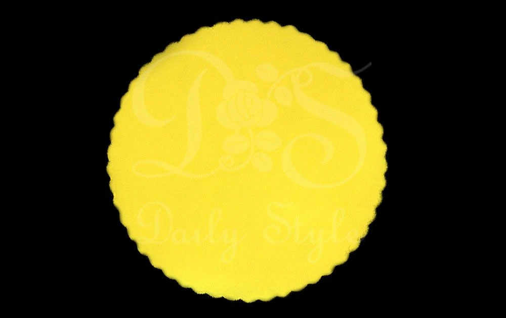 Voorgesneden decoratie tule in het geel. De tule rondjes hebben een diameter van 24 cm en zijn per 48 sheets verpakt. NB: exclusief inhoud en draad