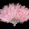 Satijnen waaier met bloemenprint in het rood. De frame van de waaier is van plastic. De waaier is 23 cm lang.
