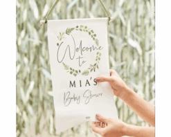 Verwelkom de aanstaande moeder en de gasten van de babyshower met dit leuke gepersonaliseerde welkomstbanner. Gebruik de meegeleverde stickers om de banner te voorzien van de naam van de mommy to be. In de set zitten 9 stickervellen en 60 cm lint om het vaantje aan op te hangen. Op de welkomstbanner staat standaard een krans en de tekst: Welcome to.. babyshower.